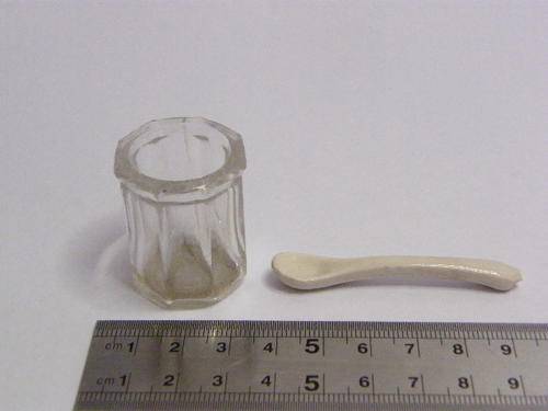 Vintage Silver Plated Sal, Pepper & Mustard Holder Cracked - Including Porcelain Mustard Spoon (repaired), as per photo