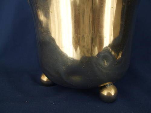Not sure what this is used for. Looks like an icebucket. Lid is missing. Has some dents. 15 cm in diameter at widest point. 13 cm high. Silverplating has worn off around the top rim.