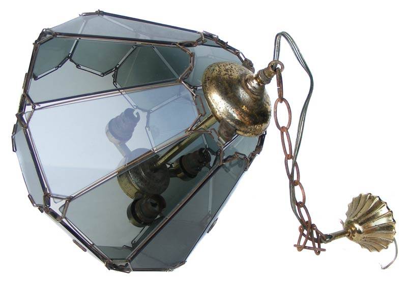 Vintage Smoked Glass and Brass 3 Globe Hanging Ceiling Light