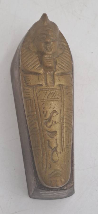 POSTAGE WILL BE COMBINED: Collection in Mondeor Johannesburg:Tip: To save on shipping -Buy more than one of My 2000+ ItemsVintage Soap Stone and Brass Mummy Sarcophagus and Soap Stone Pyramid figurinesPyramid 12cm Tall x13cm x 13cmMummy Sarcophagus 5cm high x 12,3cm brass LidCondition as in Photo's-Please see ALL IMAGES - Multiple Images Uploaded - The pictures of the items form part of the descriptionDue to the age of many of our Items there might be some Flaws and Imperfections.Colours depicted in the photos of items may differ from the actual colour of the items due to many factors including the light and the time of day that the photos are taken.I always try to get the description 100% correct with some research but can get it wrong sometimes ..i am not an expert. |