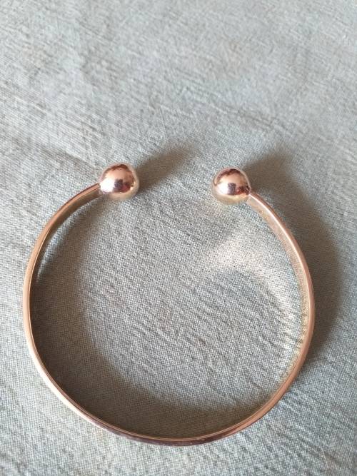 Here is a vintage solid 9ct gold Torque bracelet in very good condition with minimal age and use related wear, no damage noted. It's approx 5mm wide and the diameter is approx 58mm but as it's adjustable it should fit a larger wrist, and weighs 18.4g. Please look at the pictures as they form part of the description. Payment within 3 days after close of auction. Shipping via SAPO (at your own risk) R75 or POSTNET R115. Thanks for looking