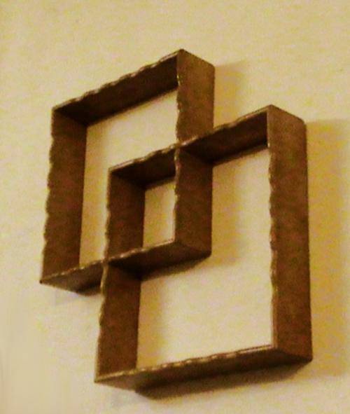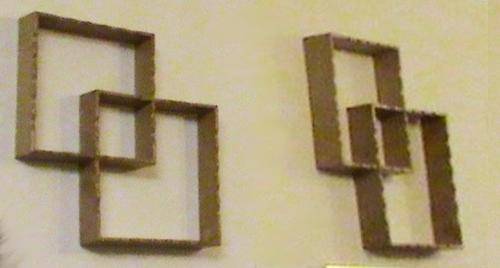 Hardware on two corners, so it can be hung as squares, one inserts inside the other.