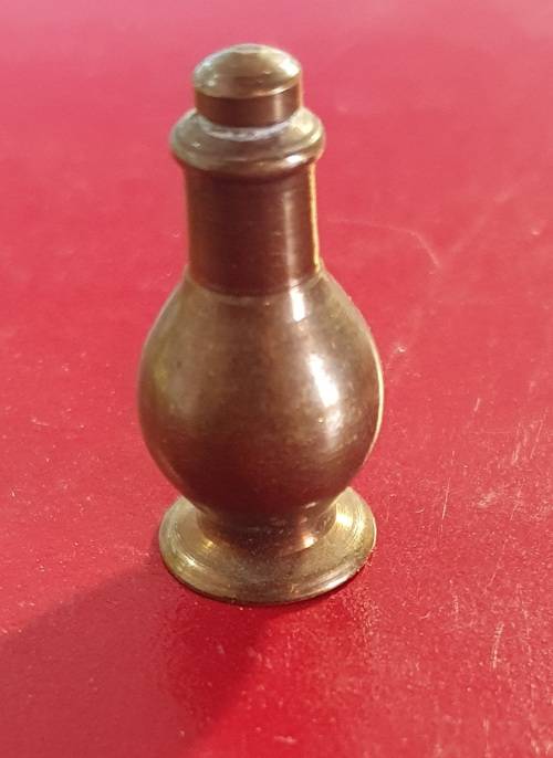 ON AUCTION: 1 X VINTAGE SOLID BRASS HAND CRAFTED ANTIQUE OIL BOTTLE MODEL .FINE DETAIL . 3 CM HIGH