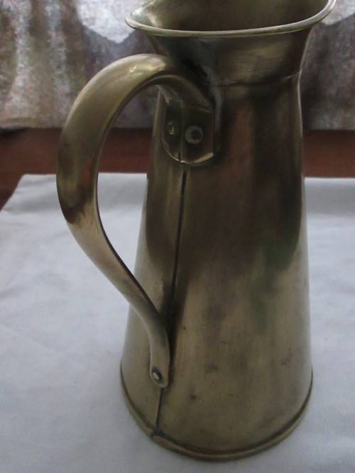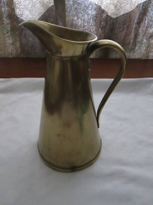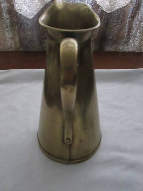 This lovely Brass pitcher is 22.5cm in height, 14cm from spout to handle and 14cm in width. A few minor dings, please see pictures. Postage & packaging R60