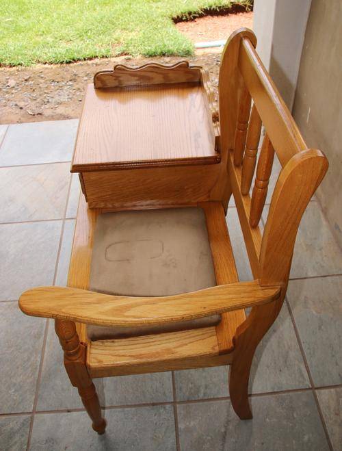 For auction is this solid oak telephone chair with a drawer. It is in good condition although the seat cover needs a good wash. Â Please have a look at the pictures as they form part of the description. This item is for collection only in Krugersdorp and payment is due within 3 days of the auction closing.Â