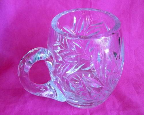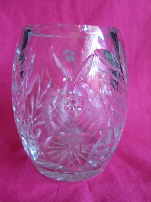 A lovely vintage solid rose cut crystal stein / vase, minor flea bites to inner rim. beautiful tone, 11.5 cm high, +/- 800 gsm in weight.
