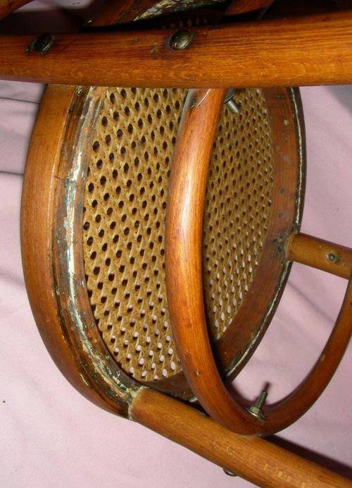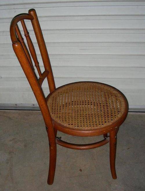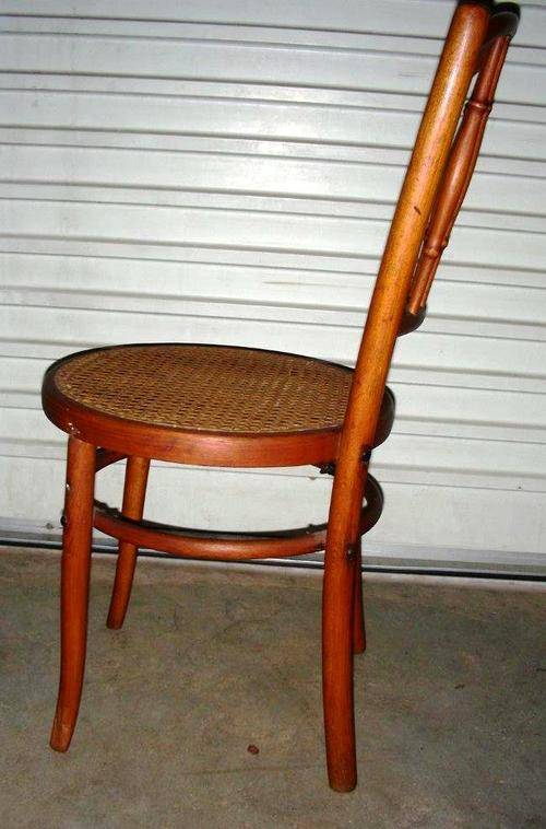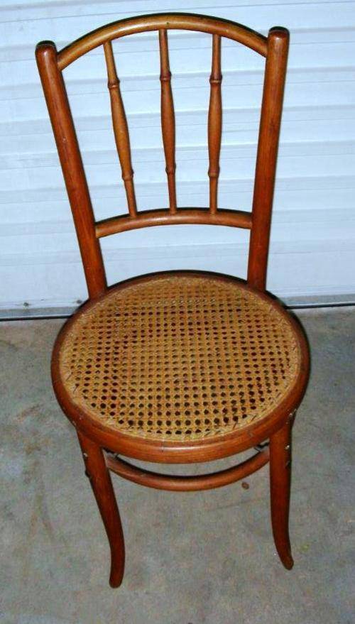 This is more than likely the Thonet design No. 98. However, I am not 100% certain on the wood being Beech, because they did work in all kinds of wood and this beautiful chair has been oiled a lot over the years so has gotten this gorgeous colour, but I am 95% certain. Has a reinforcing bracket under the seat.