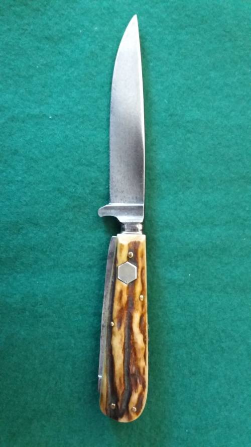 This knife has stag horn handles with an 800 silver hexagon inlay and is in used condition.Please look at the pictures as they form part of the description.There is no sheath.Payment to be made no later then 3 days after close of auction.Thanks for looking.