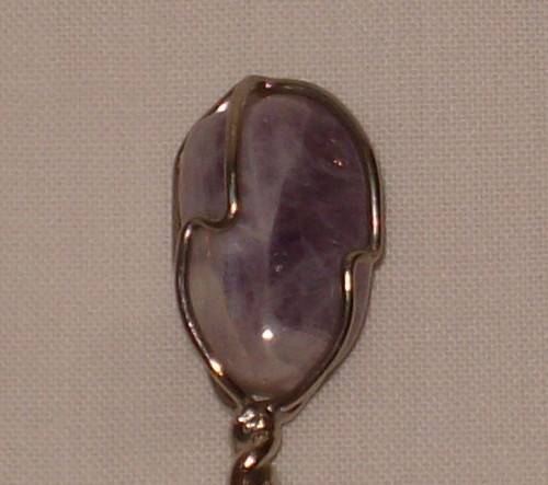 A silver plated coffee spoon, finial decorated with a semi-precious gemstone.