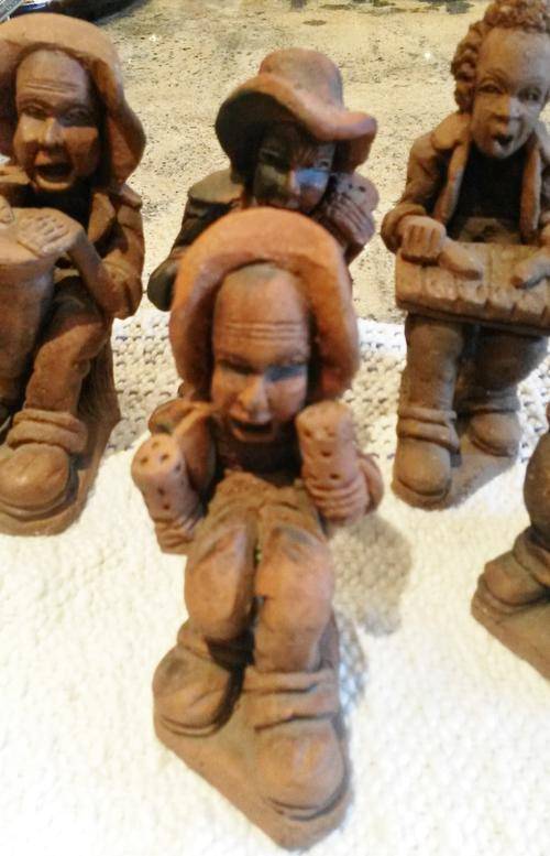 Terracotta musician figures becoming collectable and all hand made so none are the same nice detail - all seem ok no damage I can see there are 7 please ask if any questions and thanks for looking