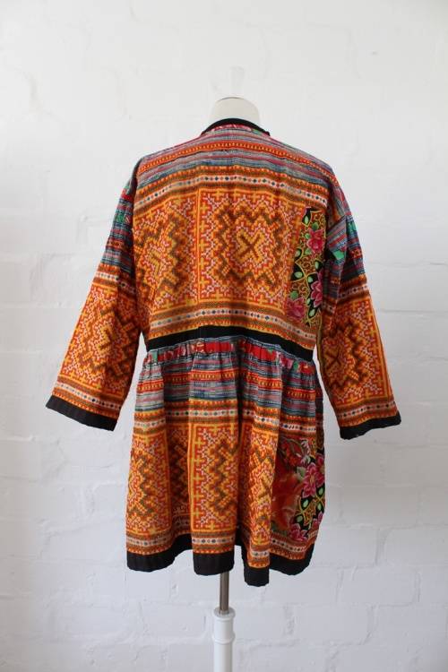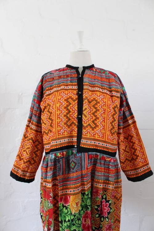 VINTAGE SOUTH AMERICAN EMBROIDERED FLORAL TAPESTRY PATCHWORK DRESS - SIZE XL