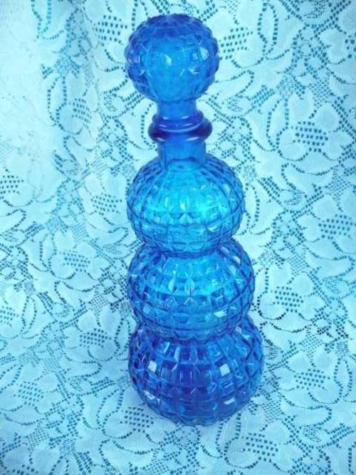BEAUTIFUL VINTAGE 3 TIERED SPARLING BLUE BOTTLE WITH STOPPER HEIGHT 325 MM