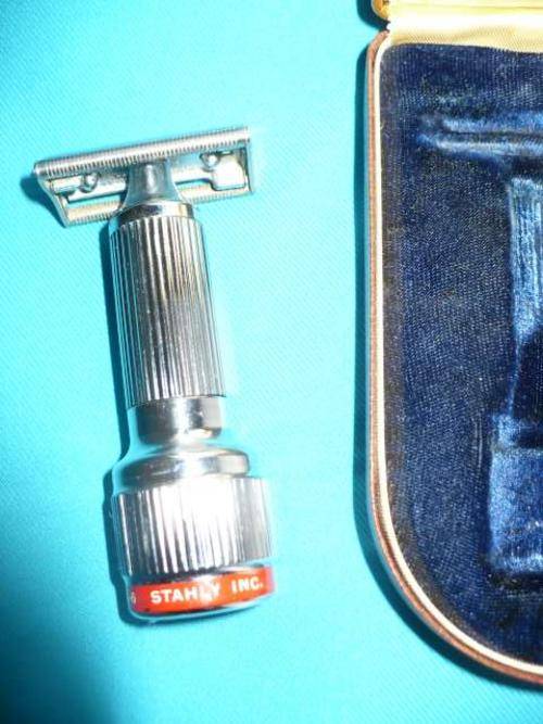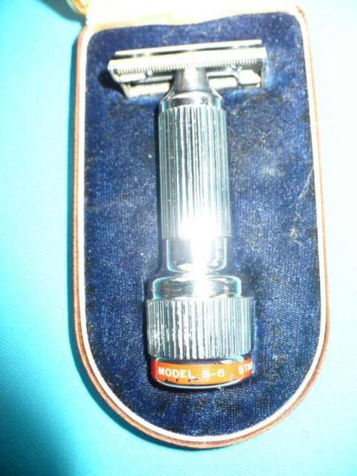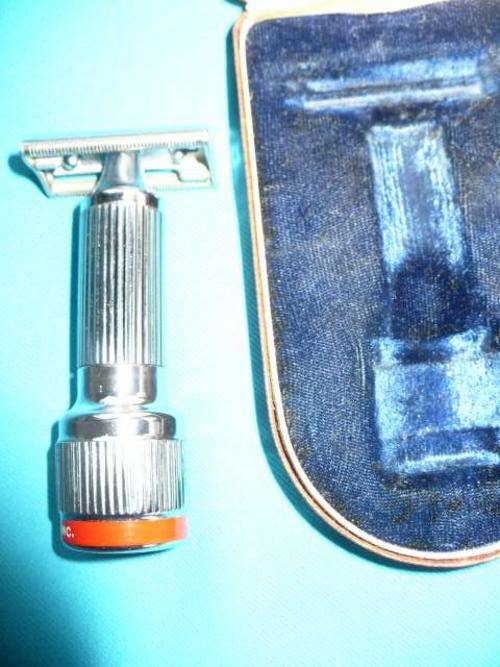 ONE OF THE FIRST RAZORS TO VIBRATE THE HEAD. THE BOTTOM OF THE RAZOR CONTAINS A WATCH-TYPE TORSION SPRING THAT CAN BE WOUND UP IMMEDIATELY PRIOR TO SHAVING. THIS CAUSES THE HEAD TO VIBRATE. THESE RAZORS WERE MARKETED BETWEEN 1946 UNTIL THE 1970s THIS ONE WORKS (I DO NOT HAVE BLADES)