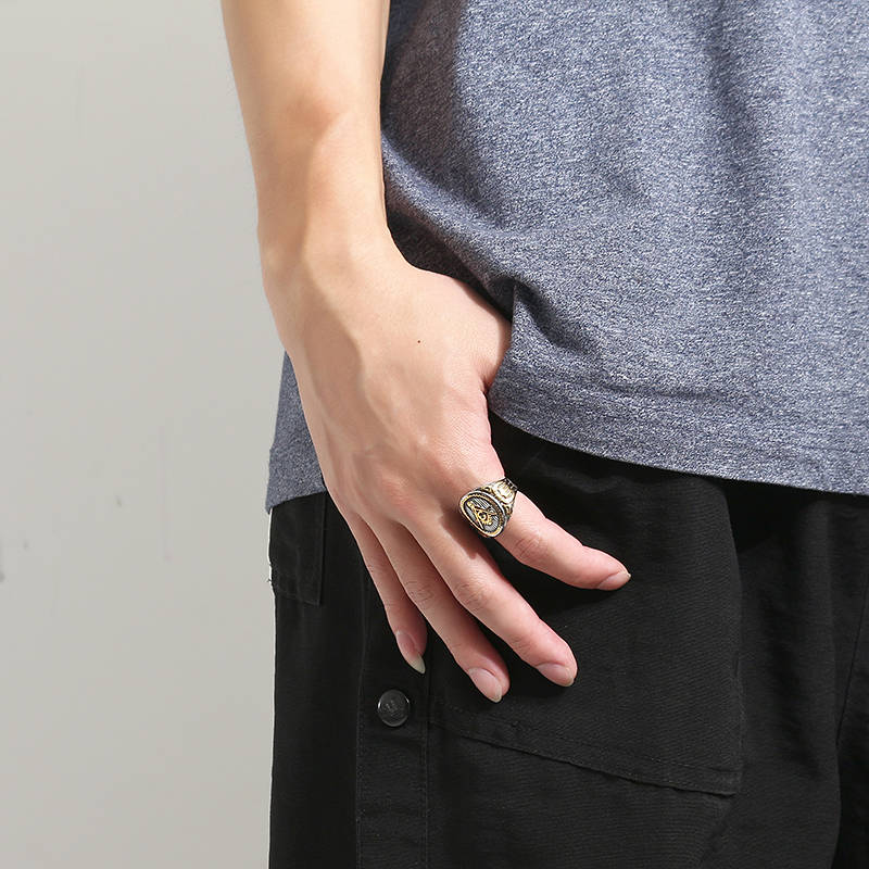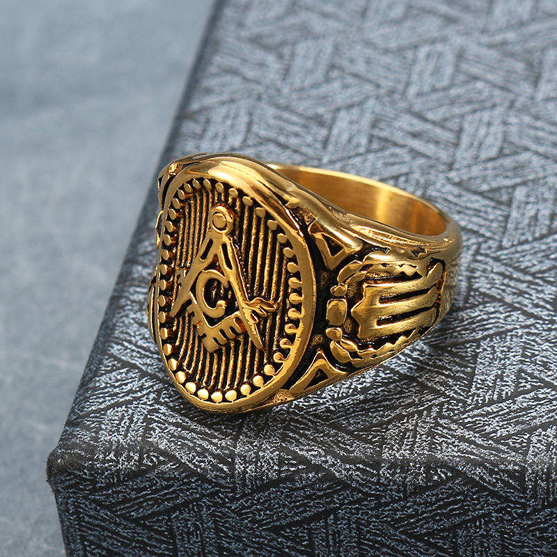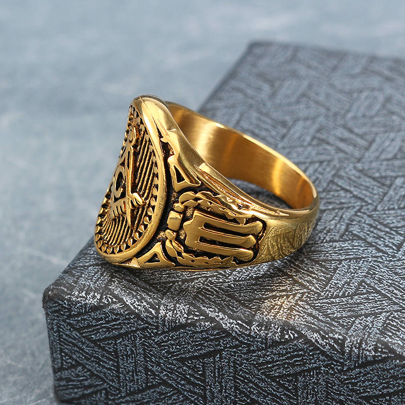 Vintage Stainless Steel Men`s Ring Free-Mason Logo Finger Ring for Men (STYLE: #3 | SIZE(US): 9)