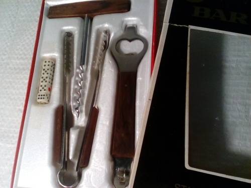 Vintage Stainless Steel & Wood Three Piece Bar Set (Ref 102)