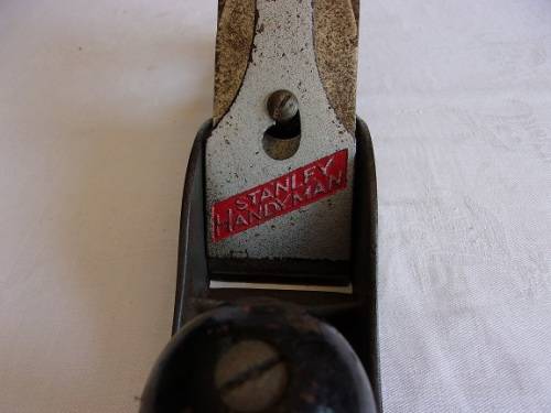 Vintage Stanley Handyman smoothing plane. I would date this plane to the 1940/50s. Similar to the Stanley No. 5 plane, It has painted black wooden handles. The plane is in fair working condition. Great buy for the woodworker.