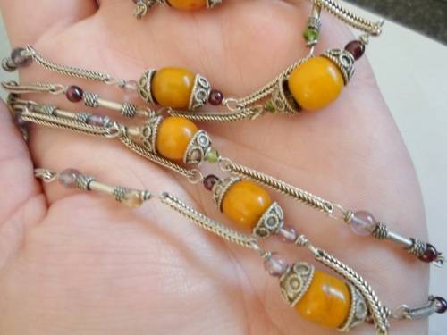VINTAGE STERLING SILVER, AMBER, GARNET, AMETHYST & PERIDOT EXTRA LENGTH 128cm NECKLACE 37,0g WOW!!