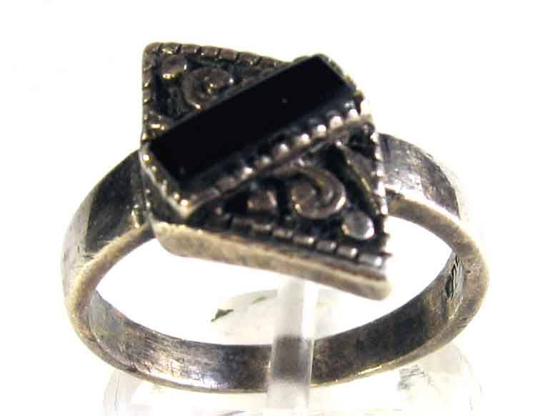This ,sterling silver -stamped 925, designed ring are - set with 8.00 x 3.00 mm octagonal cut black onyx. Top of the ring measures 15.00 x 10.00 mm.