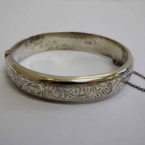 Vintage sterling silver bangle / bracelet inscribed G.D.M from G.V.M 20.4.54 - Weighs : 20g