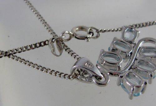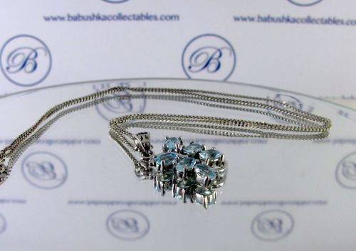 Vintage 925 Sterling Silver Necklace: Cluster Classic Floral Pendant with Blue Topaz stones & Sterling Silver Chain. Size: Pendant is 28 x 14 mm. Chain is 50 cm long. Total Weight: 5,6 gram. Condition: Fine.