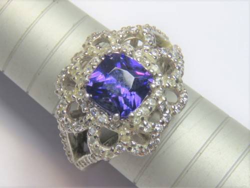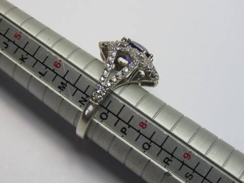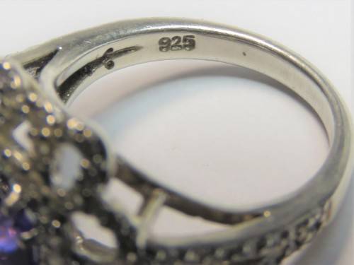Vintage sterling silver ring with purple glass stone - Weighs 7.0g - Size: N1/2