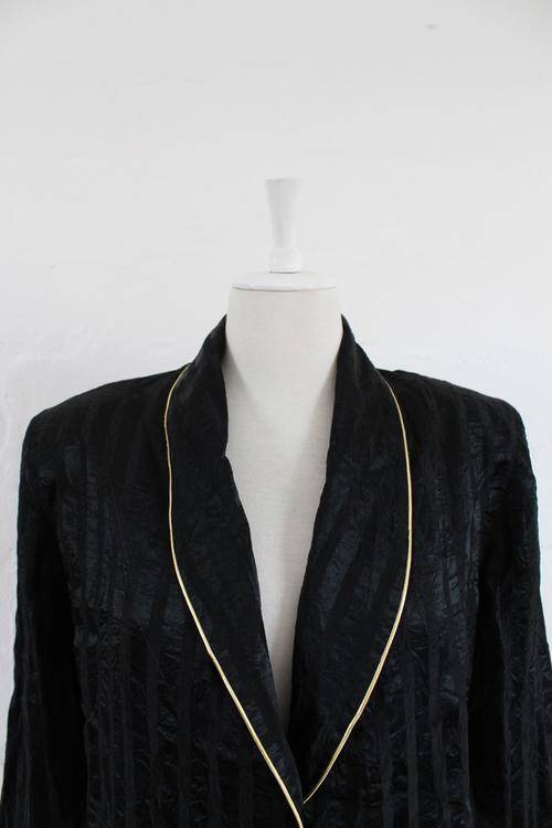 VINTAGE STRIPED BLACK GOLD TRIM CROPPED JACKET - SIZE 14