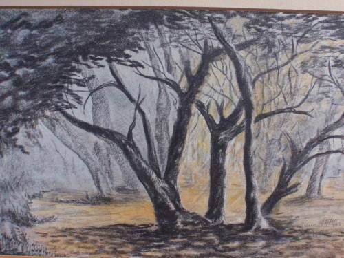 VINTAGE: STUNNING ORIGINAL CHARCOAL DRAWING by EILEEN ELFERS 1983. I THINK IT MUST HAVE BEEN SPRAYED WITH A 'FIXATIVE' BECAUSE THE CHARCOAL DOES NOT SMUDGE. IT HAS BEEN WELL MOUNTED BUT DUE TO AGE THE FRAMING CARD HAS SOME GENTLE 'FOXING' SIZE OF ACTUAL ARTWORK: 43CM X 26CM. SIZE WITH CARD 53CM X 38CM.