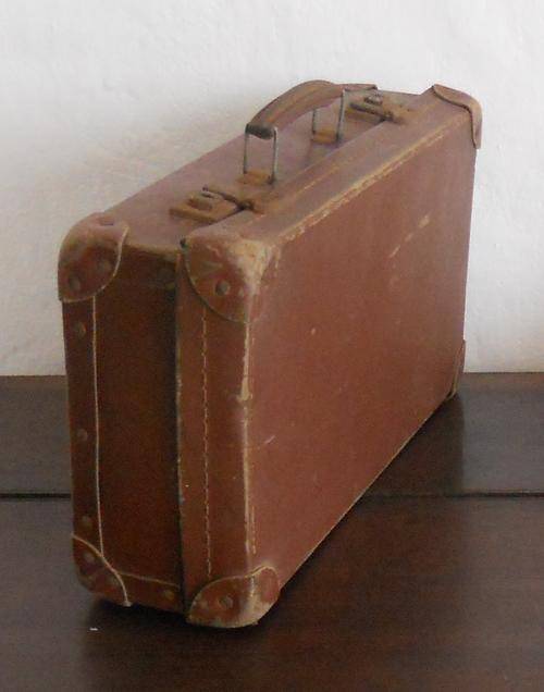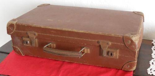 VINTAGE SUITCASE - OLD BROWN SCHOOL SUITCASE
