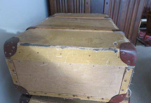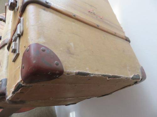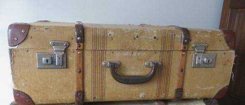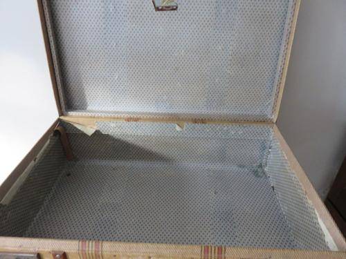 VINTAGE SUITECASE WITH WOODEN STRIPS .MARKED "THE COURIER" MANUFACTURED BY TRAVEL & PAPER PRODUCTS PTY LTD CAPE TOWN CLIPS AND HANDLE WORKS FINE PLEASE SEE PHOTOS FOR CONDITION PRICED ACCORDINGLY SIZE 42CM X 67CM 21 CM THIS WILL HAVE TO GO WITH BY COURIER