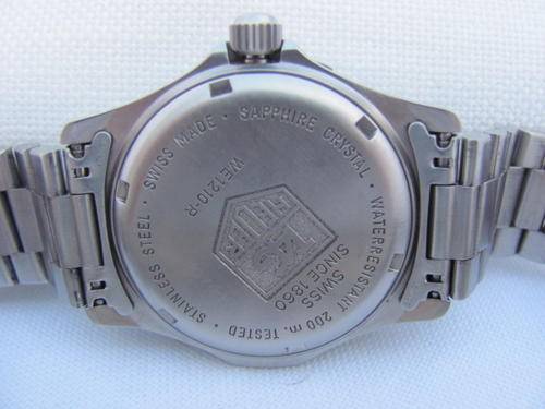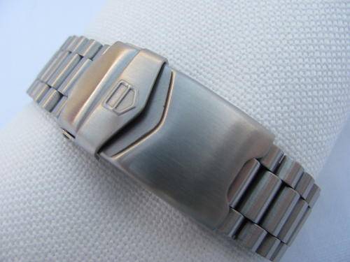 Watch band: ORIGINAL TAG HEUER SS CASE BRACELET. EMBOSSED LOGO ON THE DOUBLE LOCK. It fits up to 7 INCH
