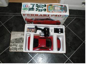Vintage tamiya F40 quick drive.still in original box with remote and manual. Car is in very good condition.Uses AA BATTERIES.