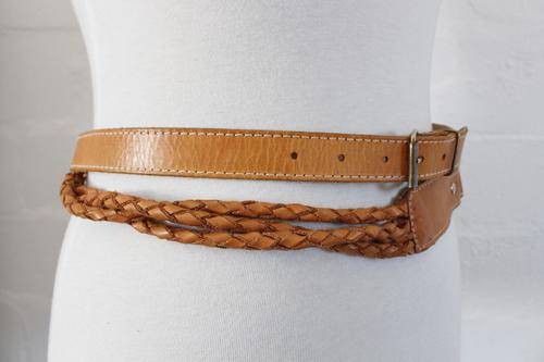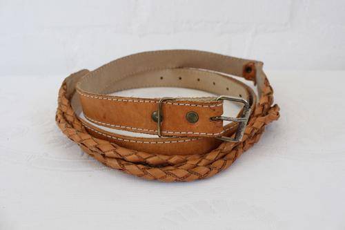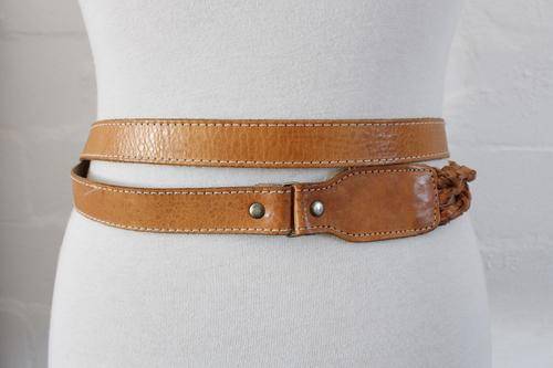 VINTAGE TAN BROWN GENUINE LEATHER WOVEN WRAP-AROUND BELT