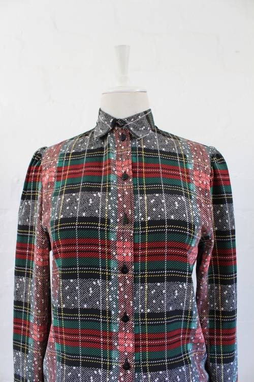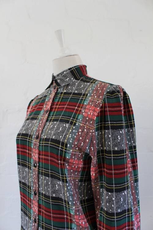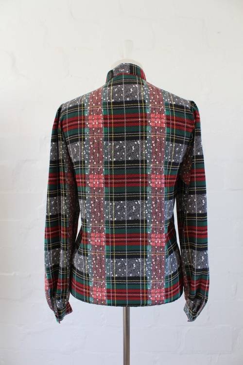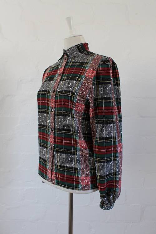 VINTAGE TARTAN PLAID PRINT GREEN RED BLOUSE TOP SHIRT - SIZE 10