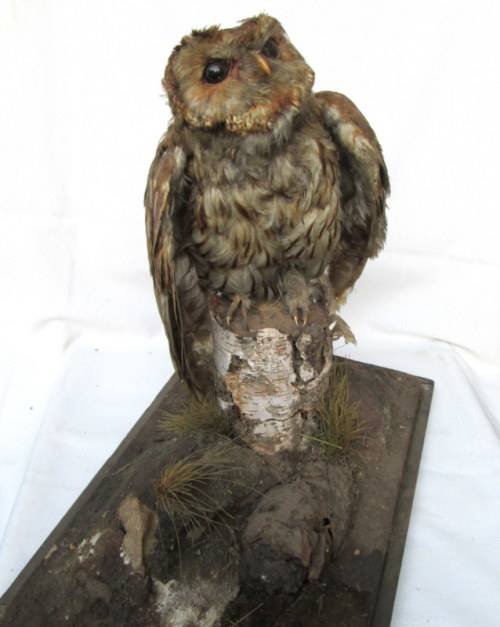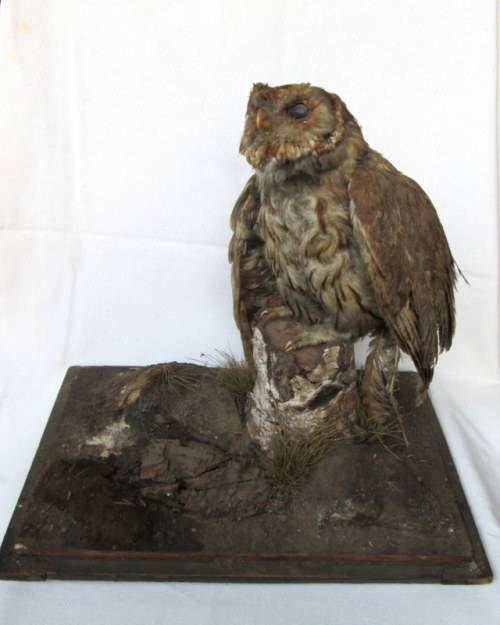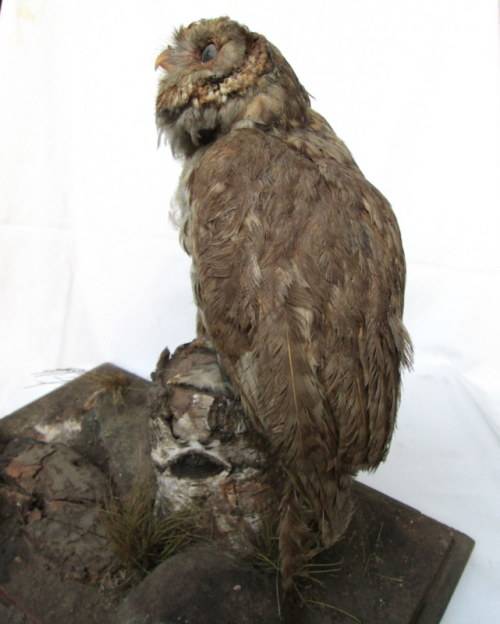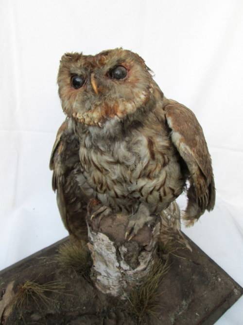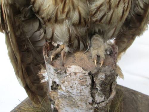 A lovely vintage taxidermy owl, size 43 cm x 27 cm x 39 cm.