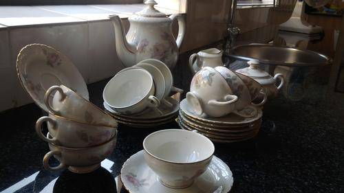 On offer today we have a Vintage Tea Set , made in Checoslovakia . 11 Cups and Sausers , tea pot , milk Jug and sugar bowl on inspection the items seem to be in a good condition did not take note of any Chips / Cracks .