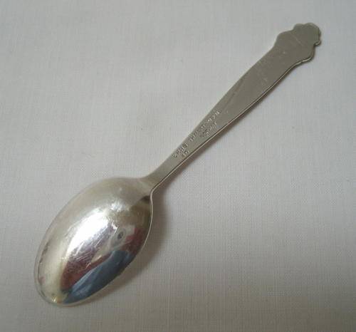 An electroplated nickel silver coffee spoon, handle finial decorated in the