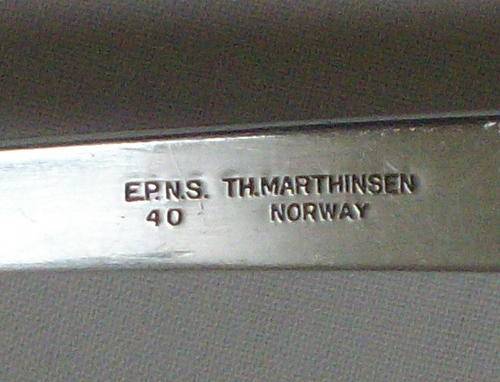 E.P.N.S. 40, TH. Marthinsen, Norway, N, indistinct mark and N. M. 40.