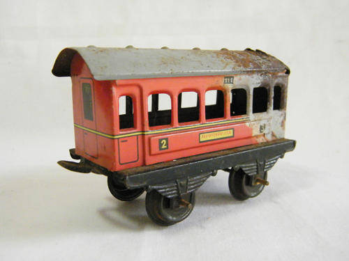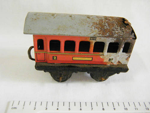 Vintage tin plate train coach - some rust damage - possibly O Gauge - as per photo