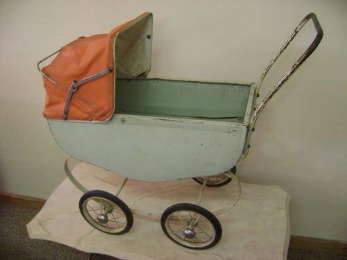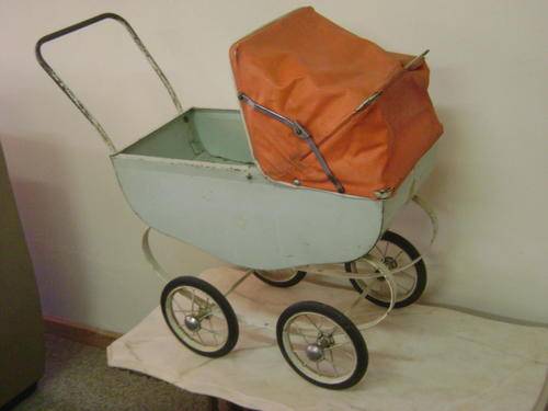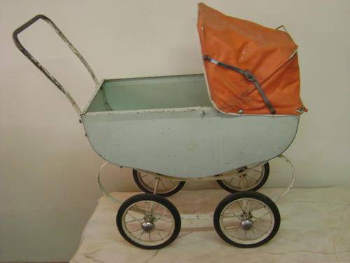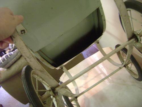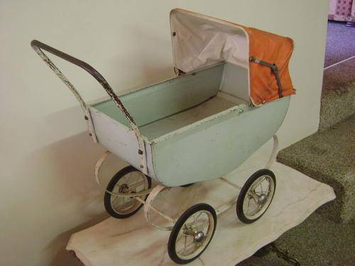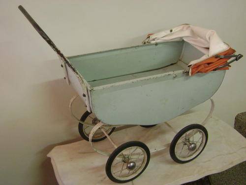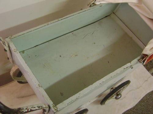 For sale this lovely old doll tin pram with original hood/canopy