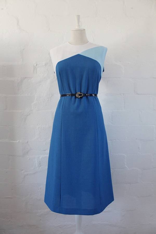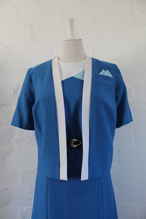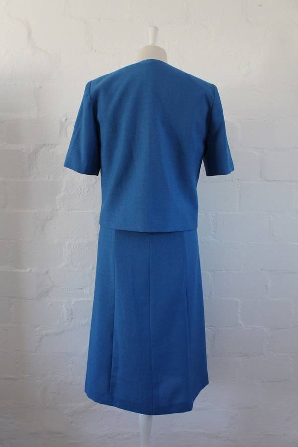 VINTAGE TWO PIECE BLUE WHITE DRESS JACKET SUIT - SIZE 14