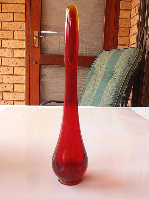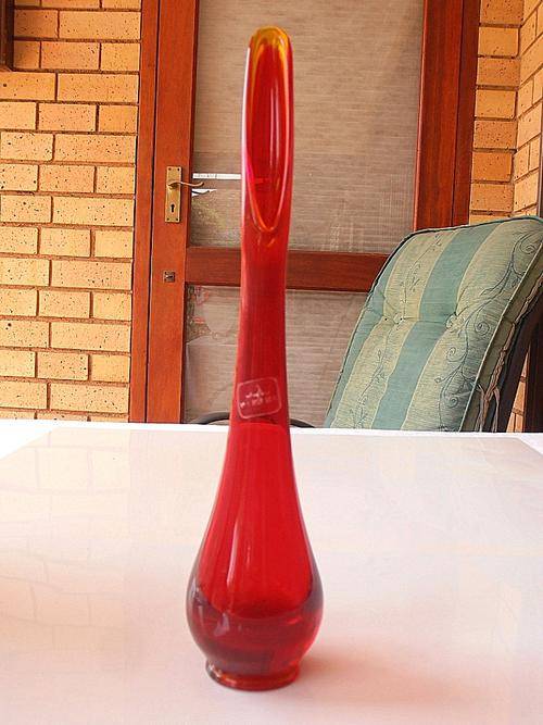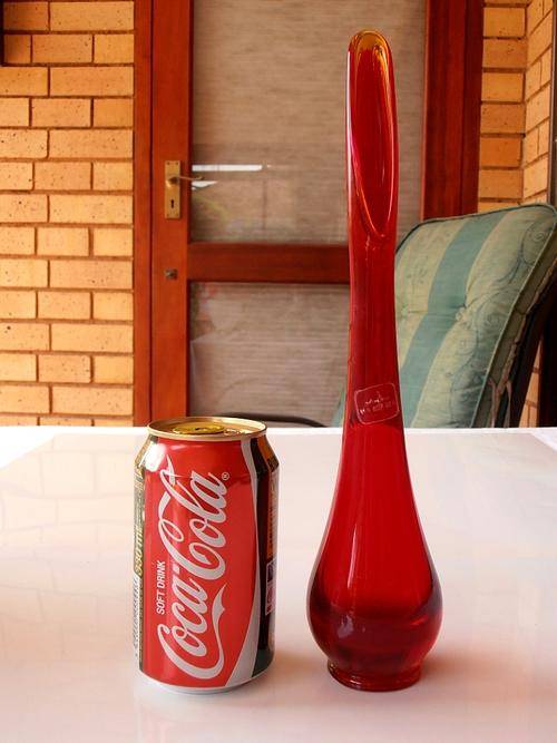 Vintage Viking glass vase in excellent condition, label in tact. Coca Cola can is for size reference only and is not included in the auction.