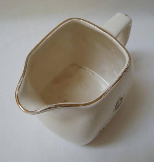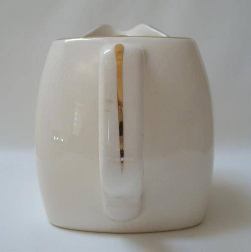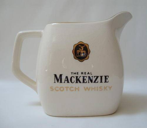 An ivory glazed ceramic water jug, emblazoned with The Real Mackenzie logo.
