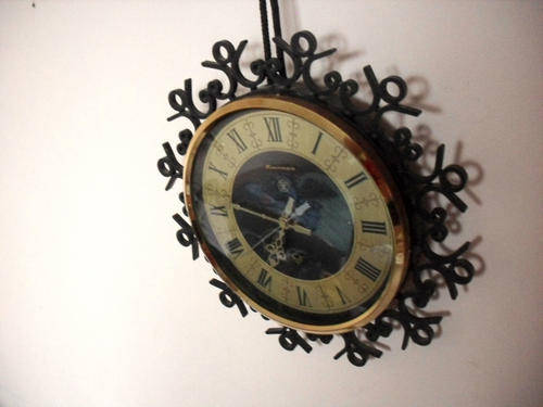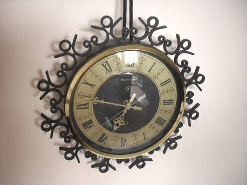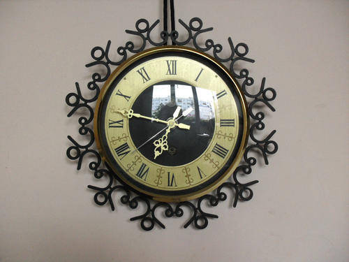 An excellent dial wall clock from the USSR by Majak made C-1970. Excellent well made electric-mechanical spring driven movement. Exceptional condition throughout. Movement overhauled and keeping very good time.