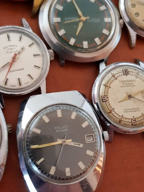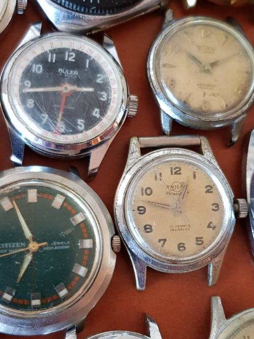 VINTAGE WATCH LOT FOR SPARES OR REPAIRS- ENICAR, ORIS, TECHNOS, BULER, ROTARY, POLJPT, CITIZEN ETC