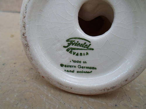 CHARMING WEST GERMAN VINTAGE FREIDEL FIGURE IN UNIFORM, SIMILAR TO HUMMEL FIGURES, FULLY HANDPAINTED AND MARKED. GOOD CONDITION EXCEPT FOR A PAINT TOUCH UP TO HAT BRIM, SPOT, NO OTHER ISSUES. GIRL FIGURE IN 30'S STYLE SHEILDING A KITTEN FROM TWO SCOTTY PUPS, LOVELY DETAIL AND 100% FREE OF DAMAGES, SIMILAR TO MABEL LUCIE ATTWELL BUT WITH A CROSSED SWORDS STAMP, NOT SURE OF MAKER. MALE FIGURE MEASURES ABOUT 13CM HIGH, GIRL IS ABOUT 12, 5 X 8,5CM