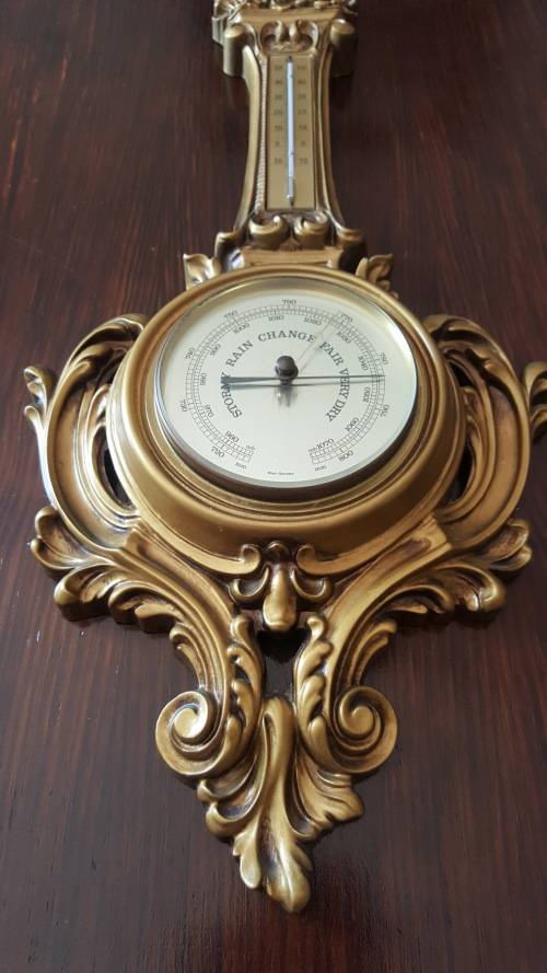 Vintage West Germany Gilt Ornate Barometers and Thermometer, Could be made from resin. please be advised that I do not know if the barometer or thermometer is in working condition.