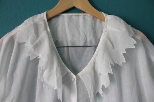 Vintage White Sheer Top with Interesting Collar (Medium)