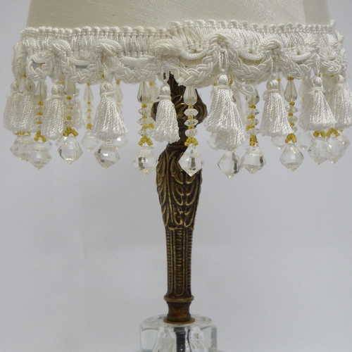 Vintage White table lamp - glass stand - electrical - Height : 38 cm