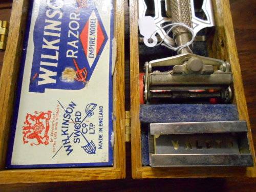 This vintage Wilkinson Safety razor - Empire model - is in a very good pre-owned condition and in its original wooden box .All the hinges are in a good working order.