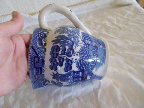 nice vintage blue and white willow pattern style creamer jug item has got hair line cracks noted on the inside of the jug will make a nice display item